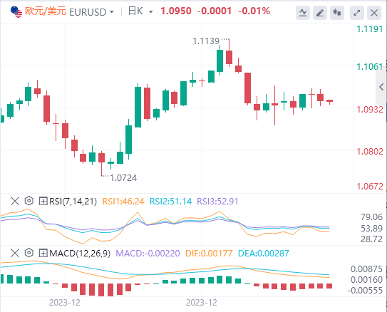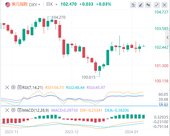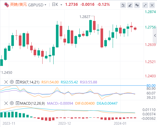 美元指数:截止发稿,美元指数交投于102.47附近。美元经历了下行压力,在12月疲软的生产者价格指数(PPI)数据中,美元一度低至102.20,但随后回升至102.40。数据公布后,美国债券收益率正在下降,而对美联储的鸽派押注加剧。技术面上,RSI目前持平并处于正值区域,表明买家已经停止了势头,但在短期内仍保持控制。除了这种试探性看涨力量的叙述之外,还有MACD。尽管持平,但它显示出绿色条形,表明购买压力保持稳定。同时,在短期内检查SMA 时,鉴于该货币对的交易价格高于 20 日均线,买方的力量仍在发挥作用。尽管如此,在 100 天和 200 天均线(一个更重要的时间框架)下交易表明,卖家在中长期观点上占据上风。