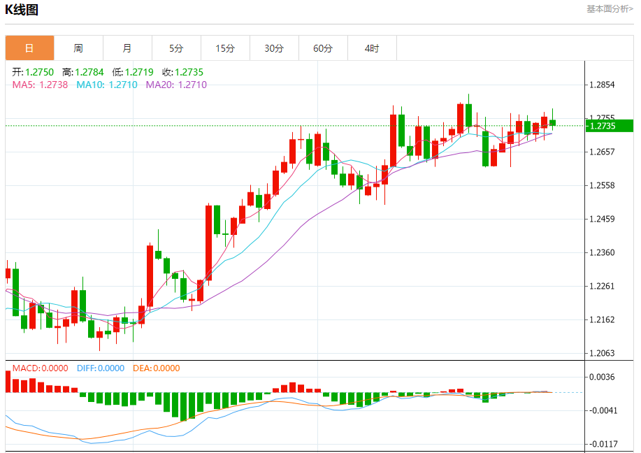 英镑/美元:截止北京时间21:20,英镑/美元下跌,现报1.2737,跌幅0.20%。纽市盘前,受随机利空的影响,GBPUSD对显示出一些看跌倾向,移动到看涨通道的支撑线以下,等待获得积极的动机,帮助推动价格恢复今天预期的看涨趋势,其下一个主要目标达到1.2880。