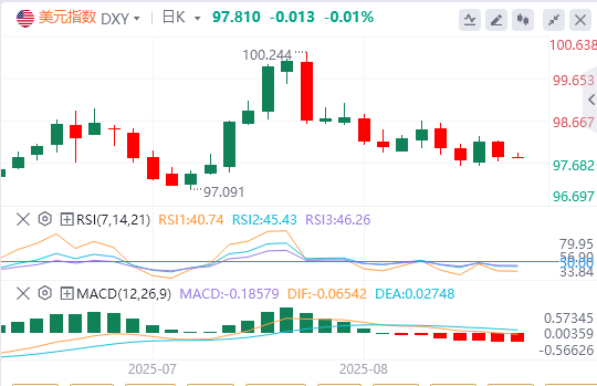 上周五,美元指数日内持续下跌,盘中跌破98美元关口,截至目前,美元报价97.81。
