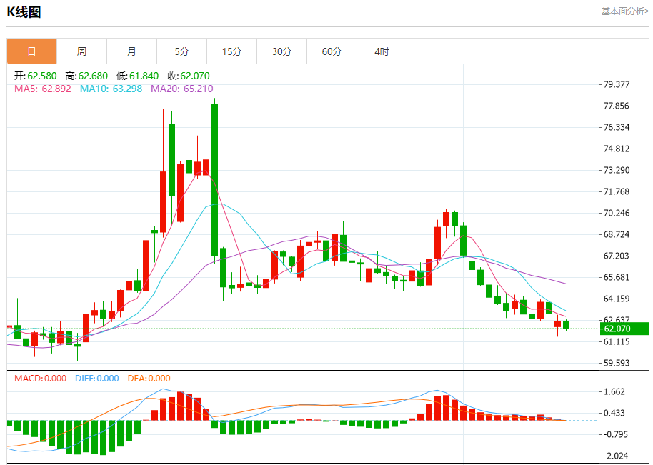 原油市场:截止北京时间20:23,美油下跌,现报62.060,跌幅1.02%。纽市盘前,(原油)价格在最后盘中交易中下跌,准备突破关键支撑位62.00美元,因为其低于EMA50的交易带来的负面压力仍在继续,并且在主要看跌趋势的主导下,短期内是小幅看跌浪的主导。