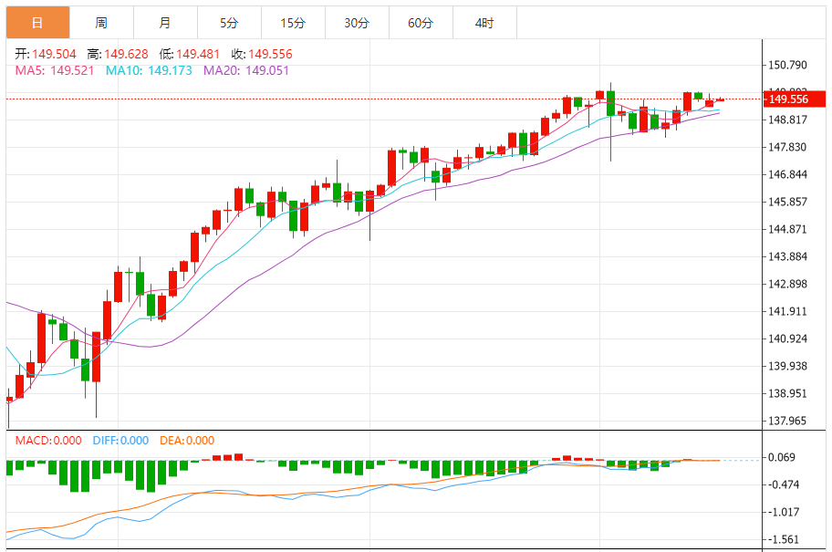 日元:美元/日元上涨,收报149.507,涨幅0.03%。技术面上,汇价上行的初步阻力位于149.741,进一步阻力位149.974,关键阻力位于150.183;汇价下行的初步支撑位于149.299,进一步支撑位于149.09,更关键支撑位于148.857。
