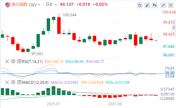 周三,美元指数呈倒V走势,最终小幅收跌0.06%。截至目前,美元报价98.12。
