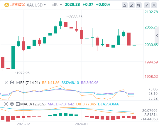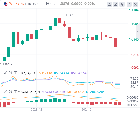 美元指数:截止发稿,美元指数交投于103.336附近。美联储的克里斯托弗·沃勒(ChristopherWaller)发表了鹰派言论,他指出,实现2%的通胀率并不像预期的那么容易,并打算在2024年只降息三次。市场预计美联储的宽松周期将于3月开始,随后在5月再次降息,这可能会限制美元的任何上行空间。尽管CPI数据较高,但市场仍然固执,并预计美联储将尽早启动宽松周期,而疲软的PPI数据使市场有理由押注不那么激进的做法。技术面上,RSI在正区域显示出正斜率,表明看涨势头正在增加。MACD通过上升的绿色条线证实了这一趋势,表明购买压力正在增加。该资产位于20天SMA上方,进一步强调了持续的看涨控制——这是短期走强的标志。相反,该指数低于100天和200天SMA的位置描绘了总体看跌立场。这一立场表明,尽管短期看涨,但卖方仍然拥有更广泛的市场控制权,买方必须重新获得100天均线才能开始考虑上行趋势是逆转。