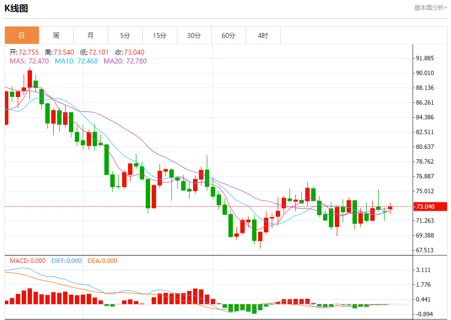 原油市场:截止北京时间21:25,美油上涨,现报73.051,涨幅0.76%。纽市盘前,原油价格在EMA50附近徘徊,显示自上午以来交易疲软,因此,今天的预期看跌趋势情景没有变化,这取决于图表上出现的看跌旗形的形成,等待突破71.80以获得将价格推向70.00的负面动机作为第一个负面站,提醒您看跌波的持续需要保持在73.73以下。