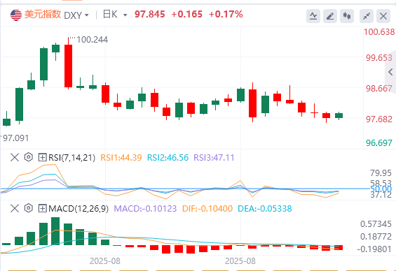 周一,由于市场对美联储的降息押注升温叠加对其独立性的担忧加剧,美元指数承压走低,截至目前,美元报价97.84。
