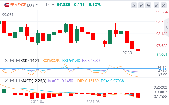 在上周疲软的美国就业报告公布后,美元指数周一延续了跌势,截至目前,美元报价97.32。