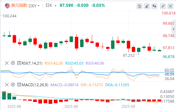 上周五,因市场等待本周四的美联储利率决议,美元指数总体呈震荡趋势,美元报价97.59。