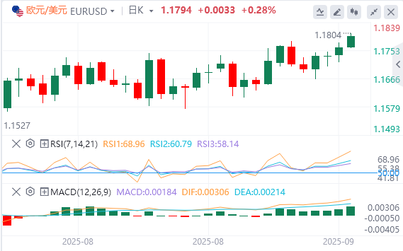 欧元/美元受益于美元全面疲软,周二欧洲早盘升至1.1800。盘中晚些时候,市场参与者将密切关注德国和欧元区的ZEW调查-经济景气数据以及欧元区7月工业生产数据。