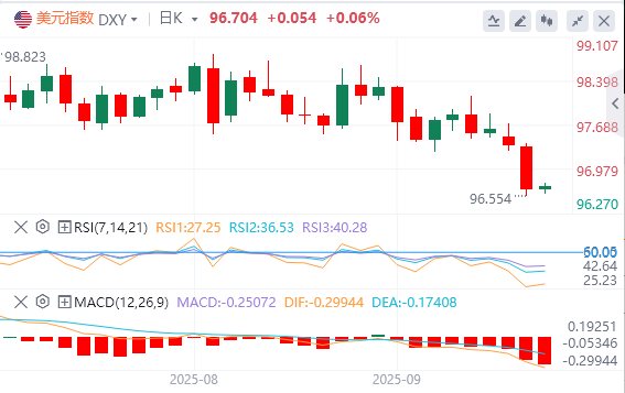 周二,因投资者押注美联储本周将降息,并评估未来数月进一步货币政策宽松的可能性,美元指数跌至逾10周以来最低水平,截至目前,美元报价96.70。