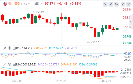 周二,美元指数在97关口上方震荡,最终收跌0.08%,截至目前,美元报价97.37。