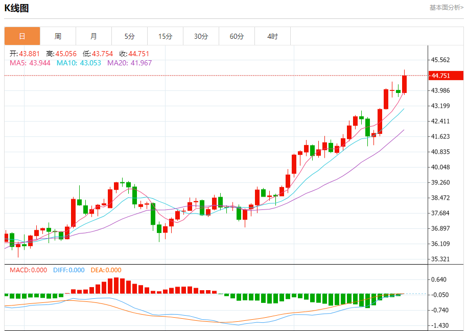 现货白银:截止北京时间20:05,现货白银上涨,现报44.751,涨幅1.98%。纽市盘前,(白银)价格在最后一个盘中交易中出现波动,试图获得可能有助于其恢复并再次恢复强劲涨势的看涨势头,主要看涨趋势在短期内占主导地位,并沿着支撑趋势线进行交易,同时,它利用了EMA50上方交易所代表的动态支撑,此外,相对于价格运动,相对强度指标达到严重超卖水平,这增加了近期快速恢复看涨势头的机会。