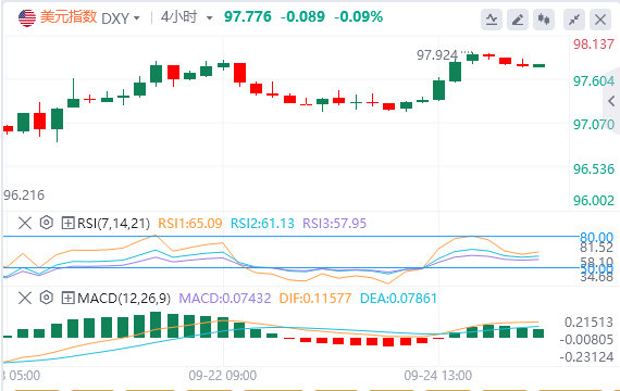 周三,美元指数日内持续上涨,并一度逼近98美元关口,但未能上破此处,截至目前,美元报价97.77。