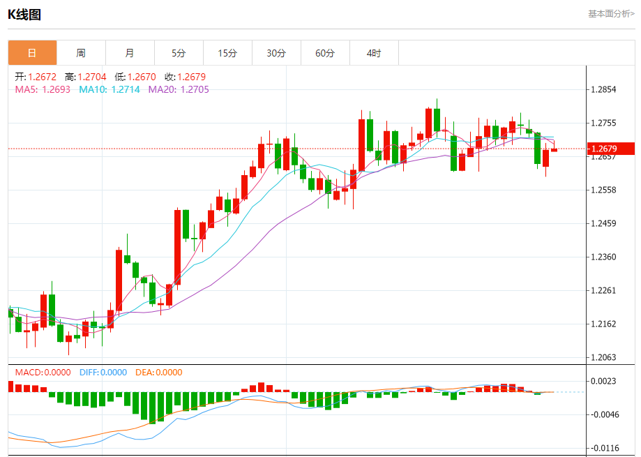 英镑/美元:截止北京时间21:23,英镑/美元上涨,现报1.2681,涨幅0.03%。纽市盘前,GBPUSD对发现很难超过EMA50,以显示暂时的横盘交易,等待获得积极的势头,帮助推动价格超过这一水平并朝着我们的预期目标前进,该目标从1.2780开始,然后是1.2825。