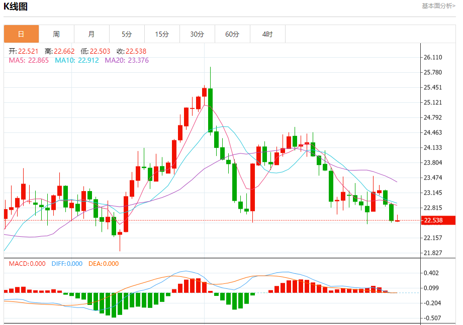 现货白银:截止北京时间21:23,现货白银下跌,现报22.533,跌幅0.00%。纽市盘前,白银价格显示出轻微的负面交易,试图达到等待的目标22.25,我们建议继续看跌,以超过这一水平,然后反弹至代表我们下一个主要目标的21.75和21.35水平,以保持今天看跌趋势的有效性和活跃性,除非突破23.00并保持在其上方。