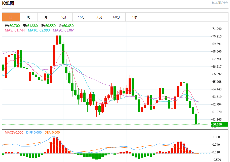 原油市场:截止北京时间20:23,美油上涨,现报60.620,涨幅0.25%。纽市盘前,在最近一次日内交易中,(原油)价格回落,此前在相对强弱指标的超卖条件下曾回吐之前的涨幅,这使其在短期内录得更多损失。在短期小幅看跌趋势占主导的情况下,由于其交易价格低于50日指数移动平均线(EMA50),负面压力持续加剧,从而强化了下行压力。