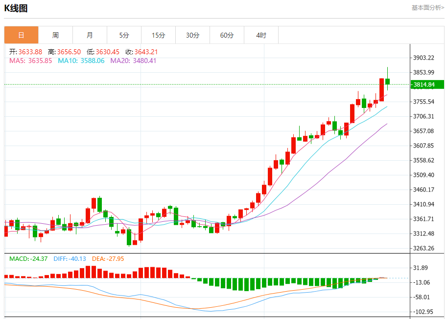 现货黄金:截止北京时间20:23,现货黄金下跌,现报3814.88,跌幅0.49%。纽市盘前,(黄金)价格在最后一个盘中交易中下跌,以收集其先前上涨的收益,试图在相对强度指标上卸载其超买条件,从那里出现负面信号,收集其积极的力量,在连续上涨后可能转向看涨轨道,在短期基础上的主要看涨趋势占主导地位,并沿着趋势线交易,继续来自EMA5上方交易的积极压力,如果保持当前阻力的稳定性,加强其复苏的机会。