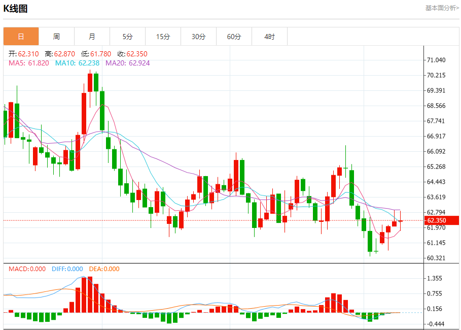 原油市场:截止北京时间20:23,美油下跌,现报62.380,跌幅0.22%。纽市盘前,原油价格在最后一次盘中交易中出现波动,短期内以看涨的修正浪为主导,同时相对强弱指标出现了积极信号,此前价格成功缓解了超买状态。另一方面,主要的看跌趋势仍然占主导地位,由于价格低于EMA50,负面压力持续存在,抑制了价格的上涨。