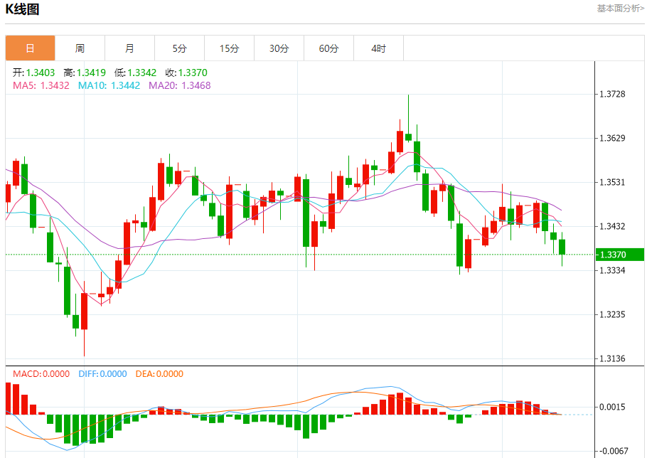 英镑/美元:截止北京时间20:23,英镑/美元下跌,现报1.3371,跌幅0.24%。纽市盘前,在最近一次日内交易中,(GBPUSD)价格谨慎地高位收盘,再次测试1.3415的阻力位,相对强弱指标的积极信号给予支撑,同时其试图缓解超卖状态,为未来可能记录更多亏损铺平道路,在短期内延续看跌趋势,并沿着支撑趋势线进行交易。