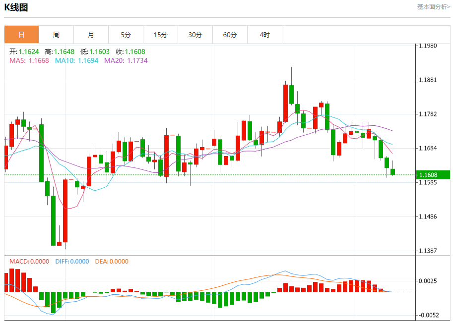 欧元/美元:截止北京时间20:23,欧元/美元下跌,现报1.1609,跌幅0.17%。纽市盘前,(EURUSD)的价格在最近的日内水平下跌,因其交易低于EMA50而持续承受负面压力,同时在短期基础上受看跌修正趋势的主导影响,并沿趋势线交易。此外,相对强弱指标出现负向背离,在价格走势过度超买水平后,从中出现负面信号,加剧了负面压力。