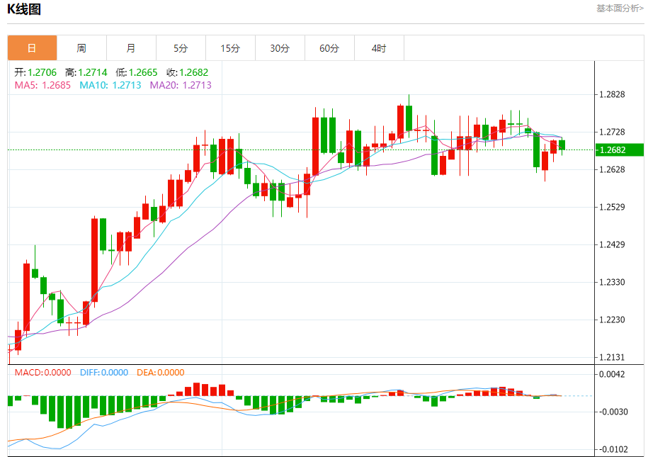 英镑/美元:截止北京时间21:23,英镑/美元下跌,现报1.2682,跌幅0.19%。纽市盘前,GBPUSD对在测试关键支撑位1.2650时表现出一些看跌倾向,受随机消极因素影响,等待获得积极的动机来推动价格恢复今天的预期看涨趋势,这取决于价格在上述支撑位上方的稳定性,提醒您我们等待的目标开始于1.2780,然后是1.2825。