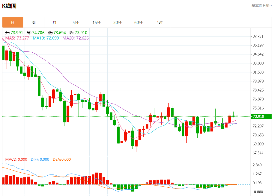 原油市场:截止北京时间21:23,美油下跌,现报73.884,跌幅0.17%。纽市盘前,原油价格积极向上突破73.73,并试图在73.73上方盘整,暗示将在当天剩余时间内启动积极的局面,并有望上探75.20,随后上探77.86水平作为下一个主要关口。