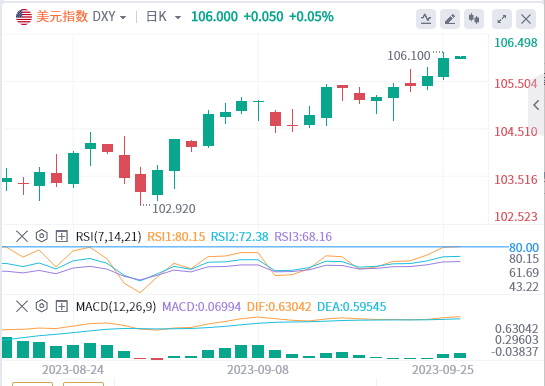 美元指数:截止发稿,美元指数交投于106.00附近。美元指数上涨至106.09,达到11月以来的最高水平,随后回落至105.90。在谨慎的市场情绪和较高的美国国债收益率的支持下,美元仍然坚挺。10年期国债收益率攀升至4.54%,为2007年10月以来的最高水平。技术面上,美指短线阻力在106.20--106.25,短线重要阻力在106.45--106.50。今天美指短线支持在105.60--105.65,短线重要支持在105.25--105.30。