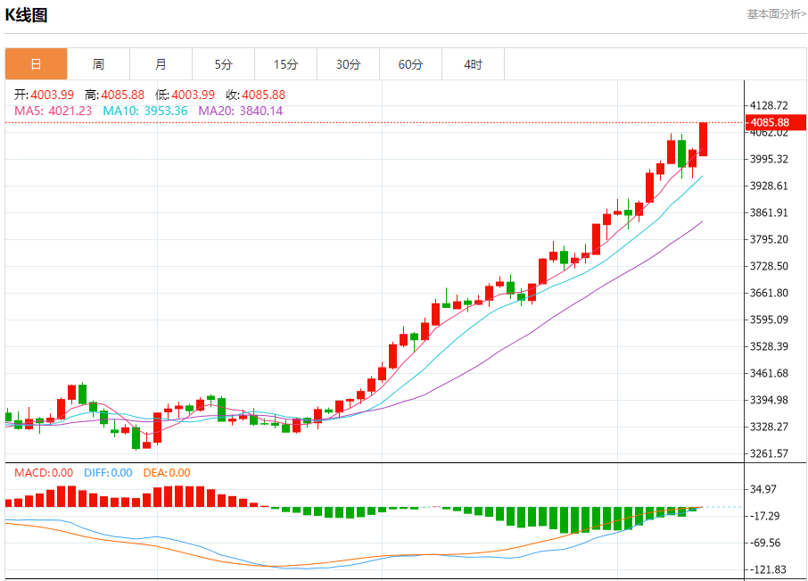 现货黄金:截止北京时间20:23,现货黄金上涨,现报4084.53,涨幅1.67%。纽市盘前,(黄金)价格在最后一个盘中交易中继续看涨,在相对强度指标出现积极信号的情况下创下历史新高,尽管达到了超买水平,这可能会减少其即将到来的收益,因为其在EMA50上方交易的积极压力仍在继续,并且在短期主要看涨趋势的主导下。