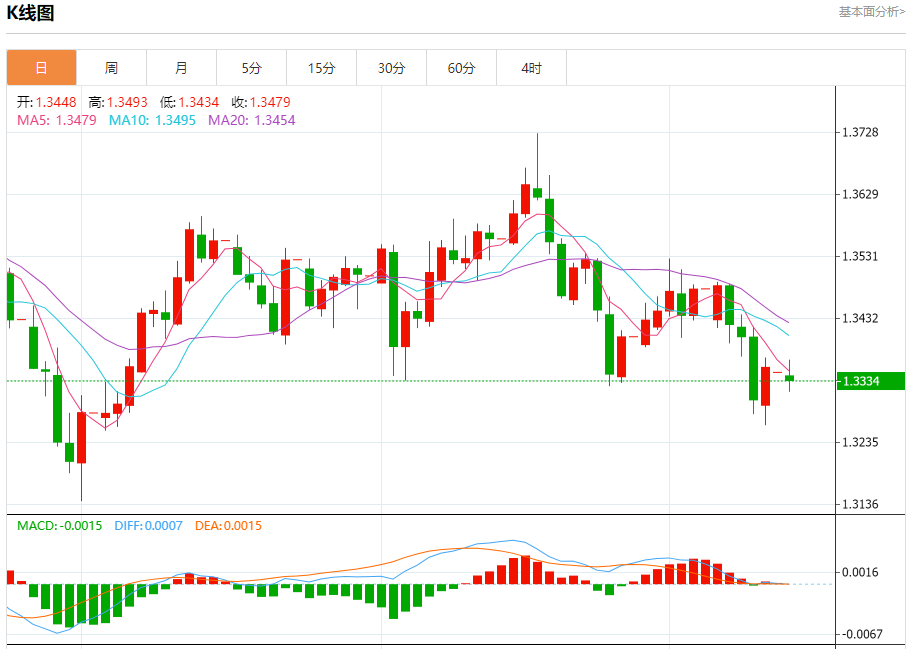 英镑/美元:截止北京时间20:23,英镑/美元下跌,现报1.3332,跌幅0.20%。纽市盘前,(GBPUSD)价格在上一交易日内上涨,回补了一部分之前的跌幅,但由于其交易价格仍低于EMA50,受到负面压力影响,这加强了短期内主要看跌趋势的持续性,尤其是在与该路径的支撑趋势线并行交易时。