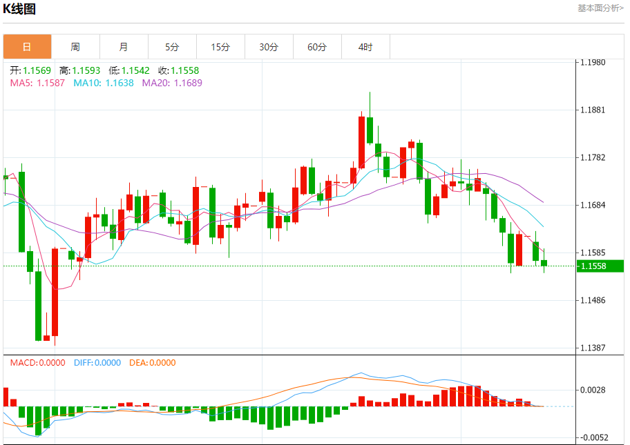 欧元/美元:截止北京时间20:23,欧元/美元下跌,现报1.1560,跌幅0.08%。纽市盘前,(EURUSD)的价格在最近的日内交易中进一步下跌,跌破了$58.40的支撑位,这一价格正是我们在之前分析中预期的目标,同时在短期内主要的看跌趋势占据主导,并沿着该趋势的支撑趋势线交易。虽然相对强弱指标已达到超卖水平,但仍出现了负面信号,显示出看跌动能的强度。
