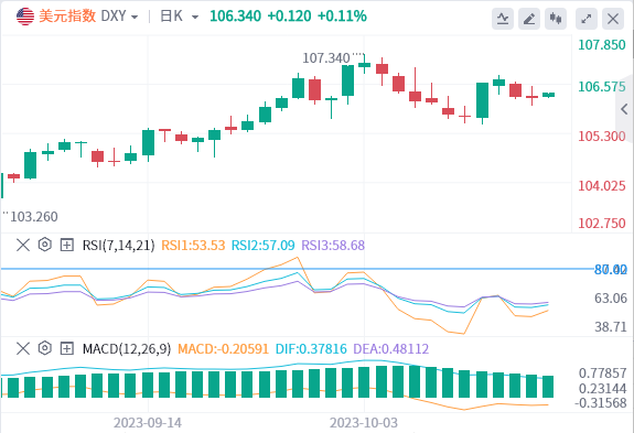 10月18日,周三亚市早盘,美元指数徘徊在附近。尽管周二公布的其他经济数据好坏参半,但是最重要的“恐怖数据”远超预期,表明美国消费依然火爆,市场押注12月加息的概率一度上升,超预期的通胀和消费数据可能令美联储面临的问题更加棘手。受此影响,美元指数一度拉升,尾盘转跌,收跌0.04%,报106.2。