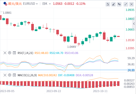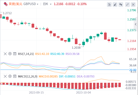 欧元:截止发稿,欧元/美元徘徊于1.0563附近。昨日欧元/美元上涨,收报1.0577,涨幅0.16%。欧央行行长拉加德表示,欧洲央行正在关注能源价格和以色列-哈马斯冲突带来的通膨风险。同时,欧央行首席经济学家菲利普-莱恩(Philip