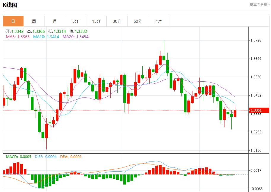 英镑/美元:截止北京时间20:23,英镑/美元上涨,现报1.3354,涨幅0.26%。纽市盘前,(GBPUSD) 的价格在上一次日内交易中上涨,受到相对强弱指标出现积极信号的支持,重新测试关键阻力位1.3340,同时由于价格交易低于EMA50的延续性负面压力,进一步巩固了短期内主要空头趋势的稳定性,并沿趋势线进行交易。