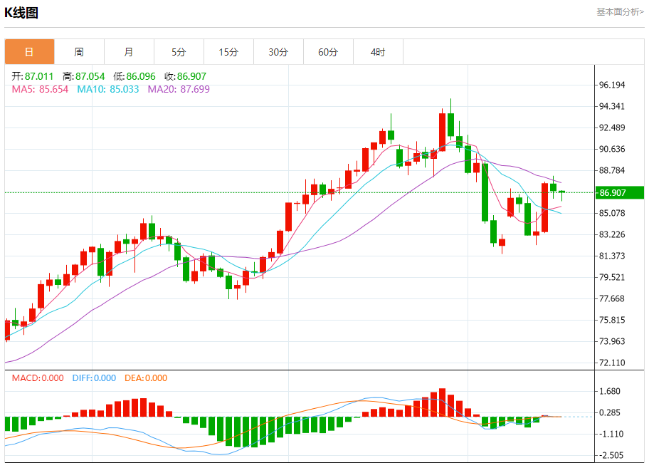 原油市场:截止北京时间20:24,美油下跌,现报86.891,跌幅0.16%。纽市盘前,原油价格在EMA50附近徘徊,等待恢复以测试84.55水平为目标的负面交易,以保持今天的看跌趋势,提醒你突破86.90将阻止预期的下跌,并导致价格实现从测试88.70水平开始的日内上涨。