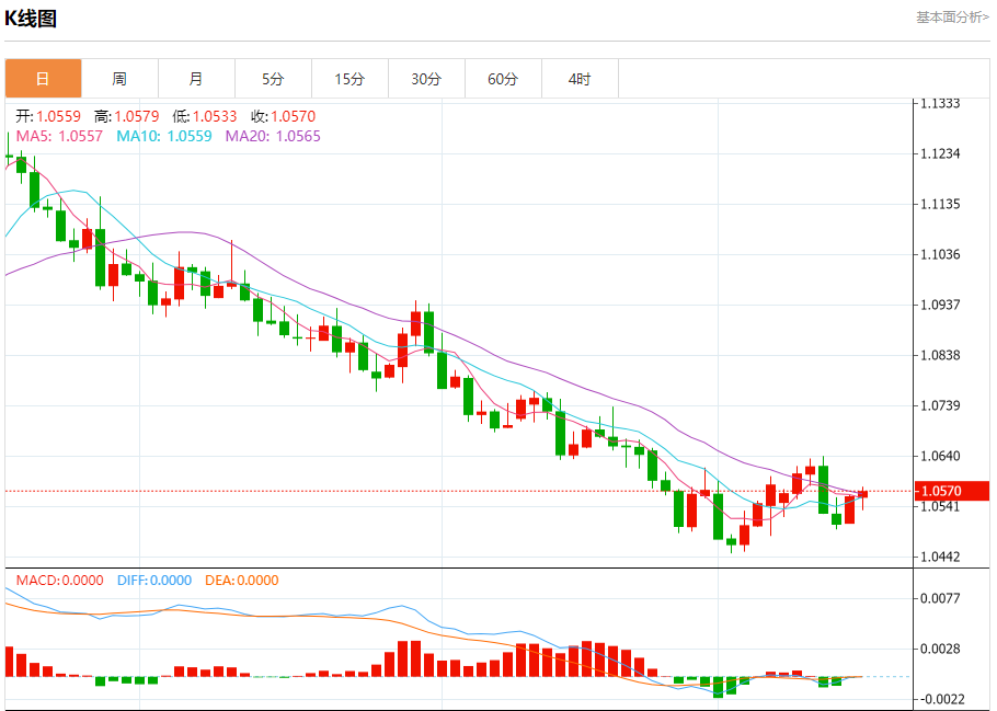 欧元/美元:截止北京时间20:24,欧元/美元上涨,现报1.0572,涨幅0.10%。纽市盘前,欧元对美元显示出轻微的看跌倾向,试图在日内的基础上继续预期的下跌,以保持今天的看跌趋势,由技术指标的消极性支撑,提醒你我们正在等待访问1.0500,然后是1.0450,作为下一个主要站。