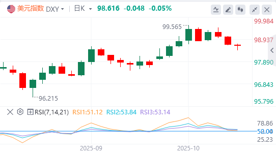 周三,美元指数连续第二个交易日下跌,失守99关口后持续走低,截至目前,美元报价98.61。