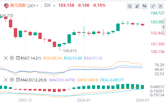 澳元/美元 受此消息影响,也走高,在0.6600附近见顶。欧元、新西兰元、 英镑、瑞郎和加元兑美元也均上涨。截止目前,美元报价103.159。