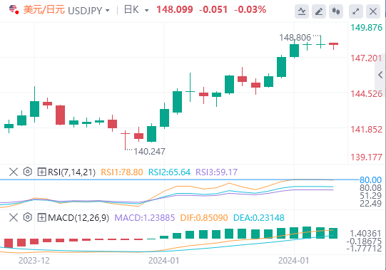 美元/日元上周五触及11月底以来的最高水平148.80,但收盘时抹去涨幅,持平于148.00,略高于148.00。该货币对在周收盘水平附近的窄幅通道内上下波动。德国商业银行(Commerzbank)分析师在预测日本央行会议对该货币对的潜在影响时说:"如果日本央行明确表示暂时不打算改变其扩张路线(我们认为这很有可能),美元/日元可能会进一步上涨。