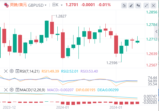 英镑/美元在前一周小幅下跌后,周一似乎进入了1.2700附近的盘整阶段。周三英国将公布服务业和制造业采购经理人指数等重要数据。