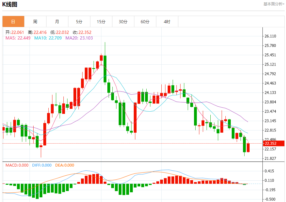 现货白银:截止北京时间21:23,现货白银上涨,现报22.349,涨幅1.27%。纽市盘前,白银价格最初突破了22.25的水平,但它又回到了22.25附近波动,在价格确认其下一个目标之前,我们保持中立,继续根据上述水平监控价格,提醒您在22.25以上盘整将推动价格主要达到23.00的涨幅,而再次低于23.25的交易将使价格面临下一个负面目标21.35的负面压力。