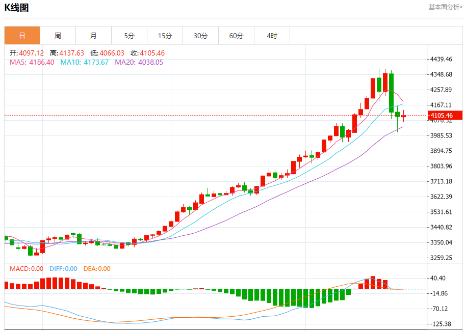 现货黄金:截止北京时间20:23,现货黄金上涨,现报4105.10,涨幅0.18%。纽市盘前,在日内交易中,由于黄金价格持续低于EMA50,同时短期内受到急跌调整浪的主导,加之相对强弱指标相较于价格走势已达到过度超买水平,从而增加了未来交易的下行压力,黄金在最后交易日的价格出现下跌。