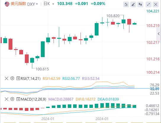 周三,美元指数有所回调,盘中一度下破103关口,并跌至102.77的日内低点,但随后迅速收复这一关口,截至目前,美元报价103.348。