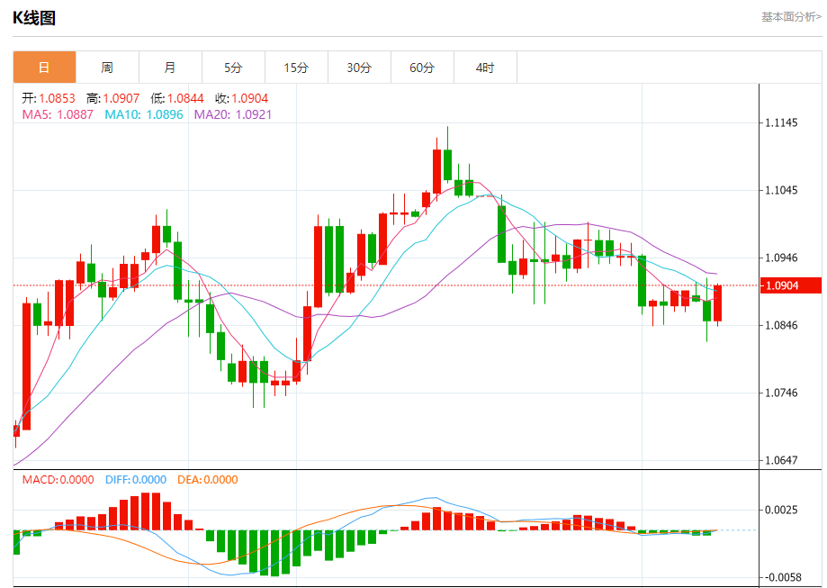 欧元/美元:截止北京时间21:23,欧元/美元上涨,现报1.0905,涨幅0.48%。纽市盘前,受随机利好因素影响,欧元兑美元汇率对突破1.0860水平的积极性很高,并试图确认超过1.0890水平,以暗示将在当天剩余时间内复苏,但我们倾向于保持观望,直到价格确认突破1.0890阻力或突破1.0860形成的支撑线,以明确检测下一个目的地。