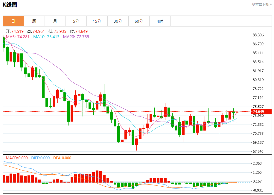 原油市场:截止北京时间21:23,美油上涨,现报74.644,涨幅0.21%。纽市盘前,原油价格显示自上午以来交易疲软,因此,今天的预期看涨趋势没有改变,这取决于价格在73.73和73.05水平上方的稳定性,由从下方支撑价格的EMA50支撑,注意我们正在等待访问77.86作为下一个主要目标。