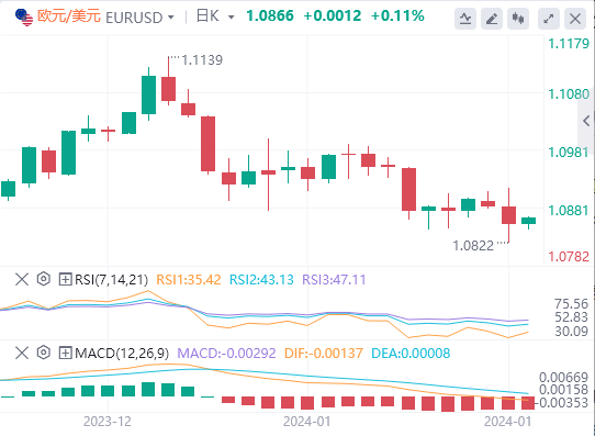欧元/美元周二在欧洲时段攀升至1.0900以上,但在下半日逆转方向,触及1.0820附近的一个多月来最弱水平。该货币对在亚洲交易时段进行了技术性修正,最后在1.0850以上的狭窄通道内波动。