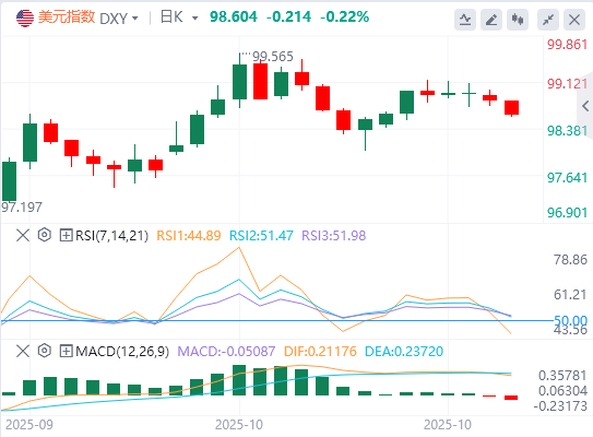 周一,美元指数震荡下行,最终小幅收跌0.13%,截至目前,美元报价98.60。