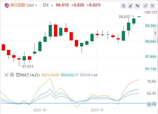 美元指数:截至发稿,美元徘徊在99.81附近。美元指数开始显着反弹,接近心理关口100.00区域,或两个月来的新高,这在不久前是不可想象的,当时美元正处于三年多来的低谷,所有迹象都指向下行。技术面上,美元指数最近的阻力位位于100.00–100.15区间。突破100.15水平将推动美元指数走向下一个阻力位101.85–102.00。