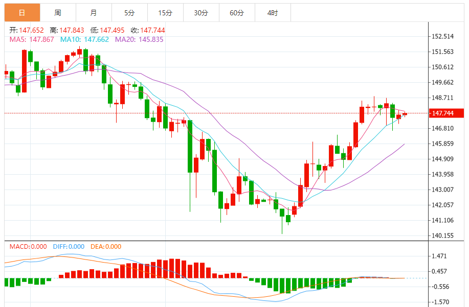 日元:美元/日元上涨,收报147.656,涨幅0.11%。技术面上,汇价上行的初步阻力位于148.042,进一步阻力位148.428,关键阻力位于148.909;汇价下行的初步支撑位于147.175,进一步支撑位于146.694,更关键支撑位于146.308。