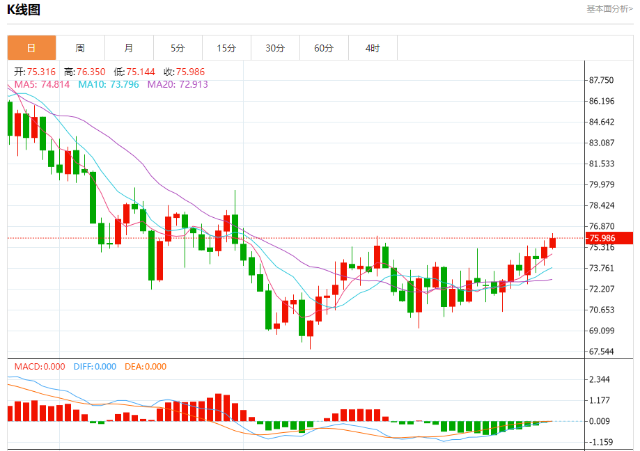 原油市场:截止北京时间21:23,美油上涨,现报75.960,涨幅0.83%。纽市盘前,原油价格明显恢复积极交易,超过76.00关口,并强化了未来几个交易日继续看涨趋势的预期,实现我们等待的主要目标77.86的道路是开放的,注意突破这一水平将延长看涨浪潮,在近期达到81.20,而预期的上涨将保持有效,除非突破73.73并保持在其下方。
