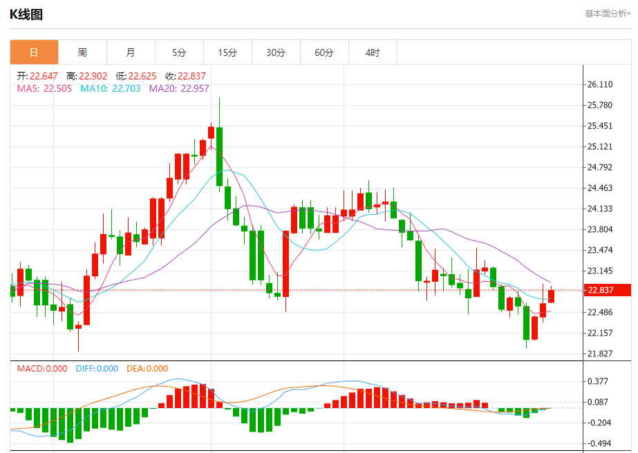 现货白银:截止北京时间21:23,现货白银上涨,现报22.840,涨幅0.85%。纽市盘前,自上午以来,白银价格在窄幅区间内波动,随机指标试图摆脱其负面势头,只要价格高于22.65,我们今天的看涨观点就将保持有效,并受到EMA50的支持,提醒您我们的目标是从突破23.00开始反弹至23.70作为下一个正站。