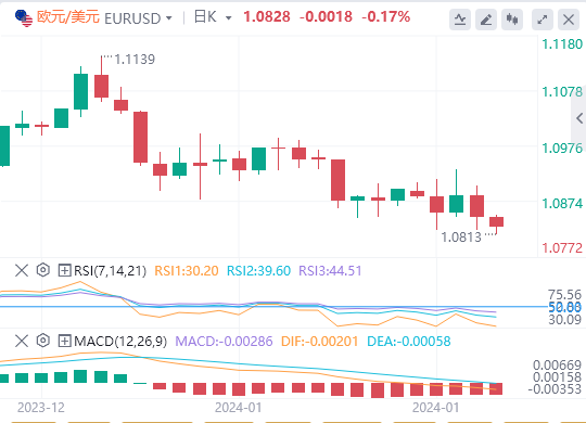 欧洲中央银行(ECB)周四宣布,在1月份的政策会议后维持主要利率不变,一如市场普遍预期。在会后的新闻发布会上,欧洲央行行长克里斯蒂娜-拉加德(ChristineLagarde)没有就政策转向的可能时机发表评论,并重申现在谈论降息为时尚早。欧元/美元周四收于负值,周五早盘继续走低。截至发稿时,该货币对交投于1.0850下方。